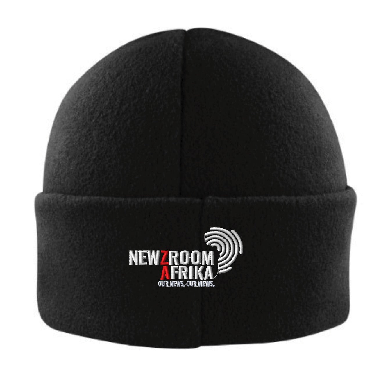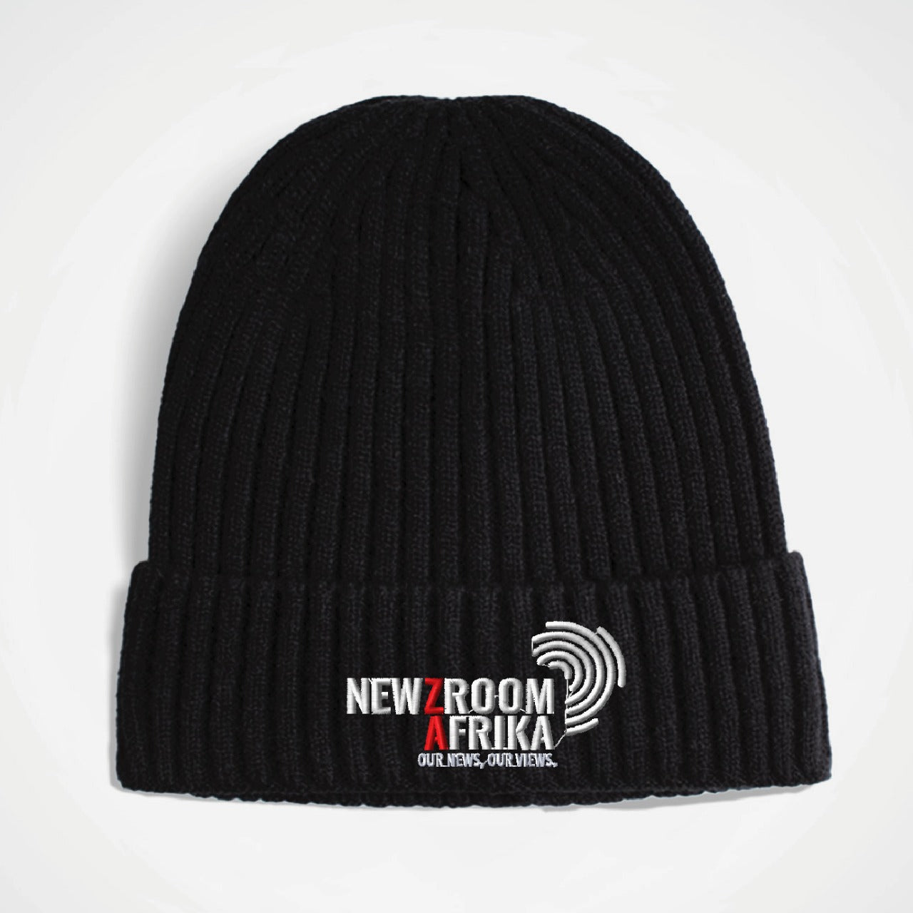 Glacier Ribbed Beanie – Black with Newzroom Afrika Branding